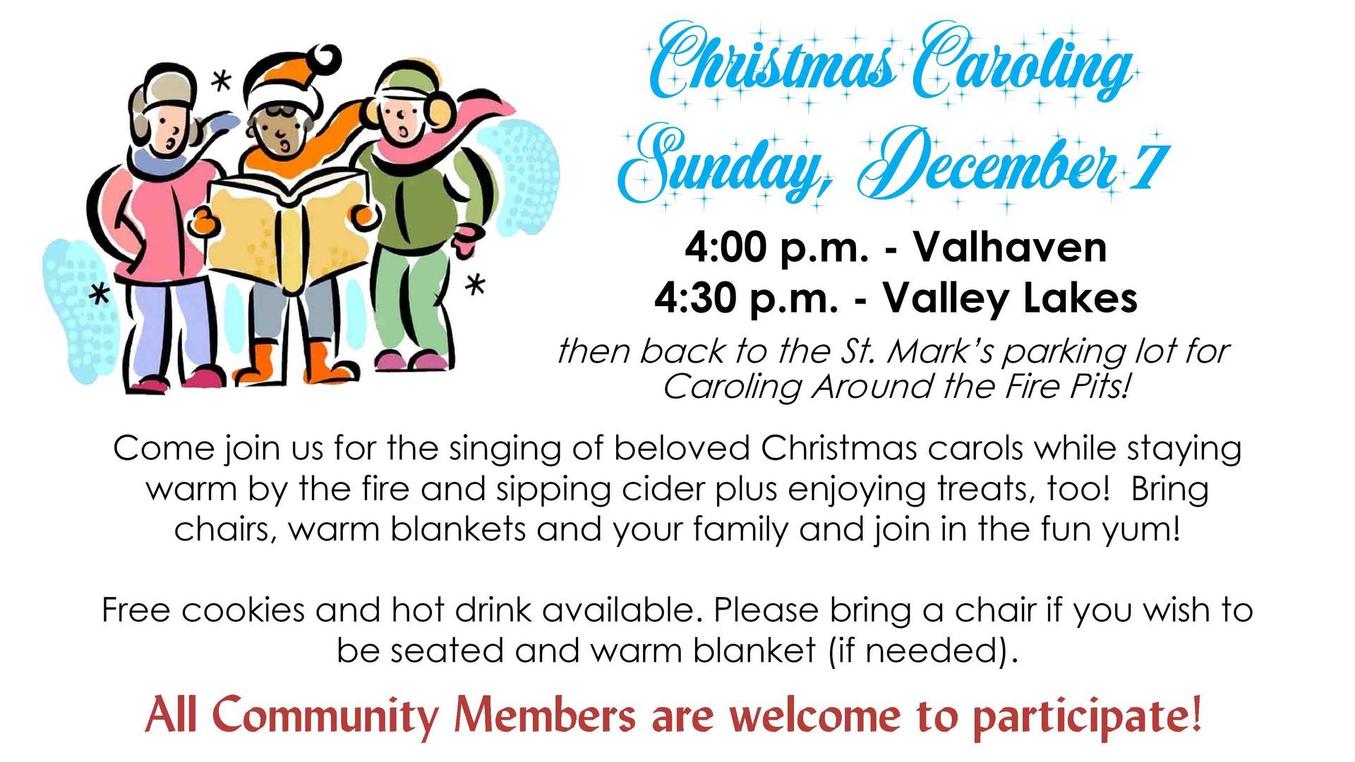 Caroling @ Valley Lakes & Valhaven @ 4 p.m.,